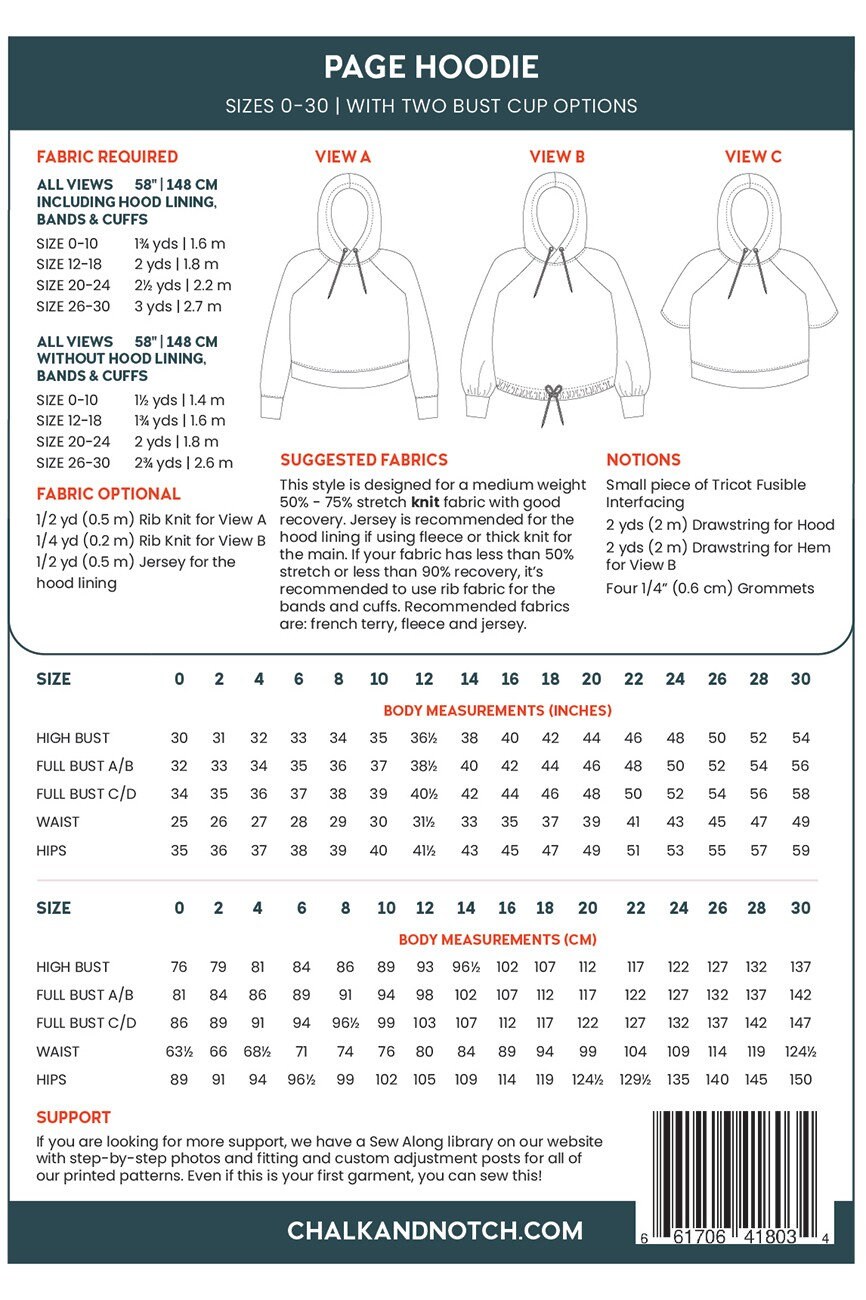 Page Hoodie Top Sewing Pattern Sizes 0 30 From Chalk And Etsy